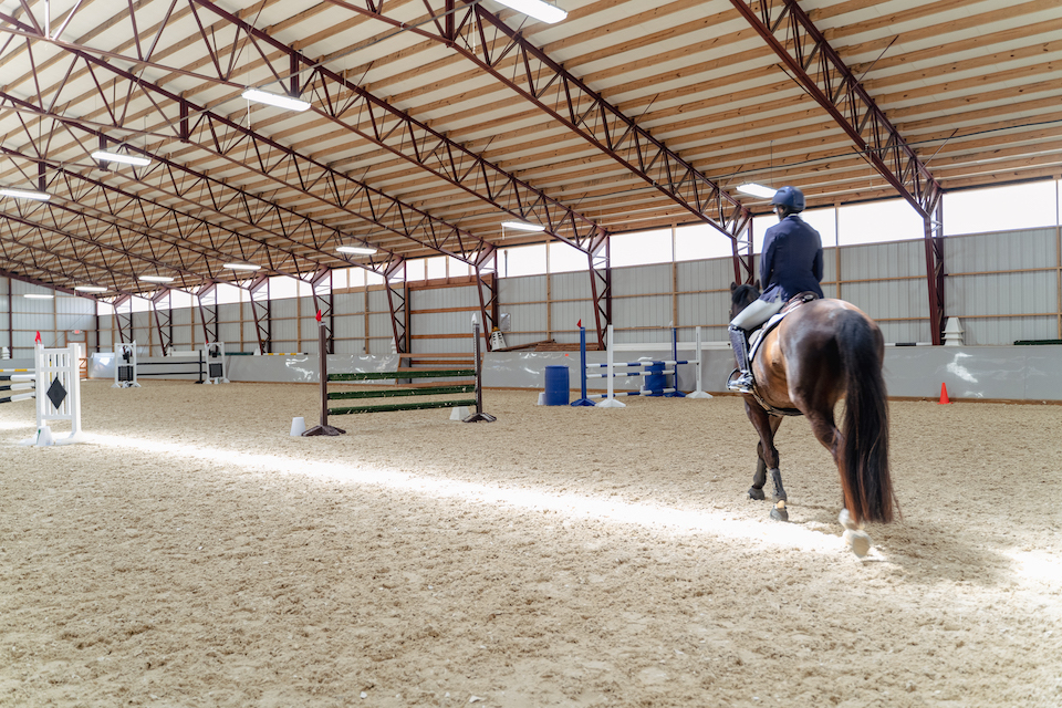 Shenanigans Stables was built with a 100’ by 200’ indoor riding arena. At this size you have the flexibility to have multiple riders in the arena at the same time without feeling crowded.
